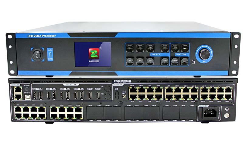 ZH-Z40 4K二合一視頻處理器是中航軟件為滿(mǎn)足LED大屏安裝方便精心打造的一款產(chǎn)品。支持HDMI、DP等高清信號四畫(huà)面任意漫游輸入;最大可接收4096*2160@60Hz像素的高清數字信號,支持40路千兆網(wǎng)口輸出,單機帶載支持最寬16384像素,或最高8192像素的大屏。采用全新通信架構,高刷新、高亮度、全新灰度掃描引擎,納秒級同步,惡劣通信狀態(tài)仍能保持通信順暢,讓廣大用戶(hù)感受更多彩、更美好的LED世界!