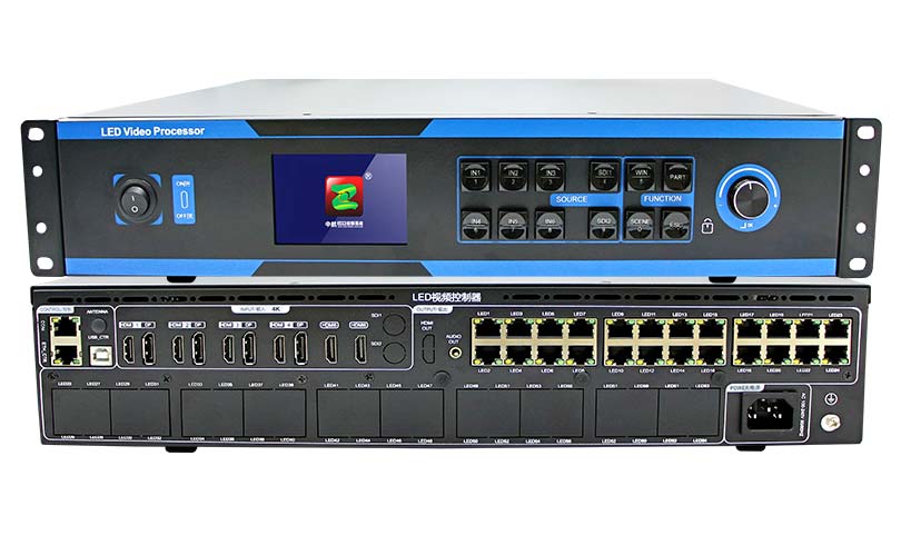 ZH-Z24 4K二合一視頻處理器是中航軟件為滿(mǎn)足LED大屏安裝方便精心打造的一款產(chǎn)品。支持HDMI、DP等高清信號六畫(huà)面任意漫游輸入;最大可接收4096*2160@60Hz像素的高清數字信號,支持24路千兆網(wǎng)口輸出,單機帶載支持最寬16384像素,或最高8192像素的大屏。采用全新通信架構,高刷新、高亮度、全新灰度掃描引擎,納秒級同步,惡劣通信狀態(tài)仍能保持通信順暢,讓廣大用戶(hù)感受更多彩、更美好的LED世界!