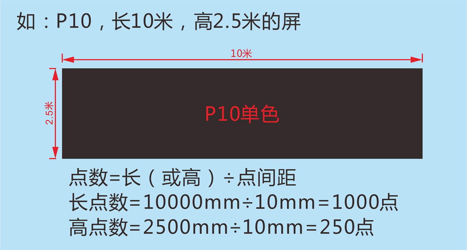 每個(gè)像素點(diǎn)可以是一顆LED燈(1R)、兩顆LED燈(1R1G)、三顆LED燈(2R1G)。P10的點(diǎn)間距為10mm;P12的點(diǎn)間距為12mm......(點(diǎn)間距以毫米為單位計量)