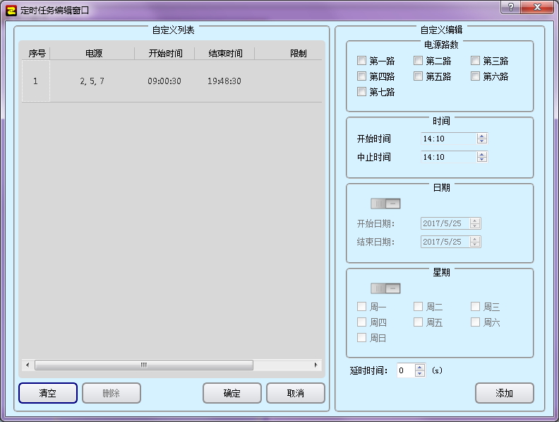II、定時(shí)管理:七路開(kāi)關(guān)任意綁定;年/月/日/星期限制條件可選;延時(shí)啟動(dòng)時(shí)間設置。