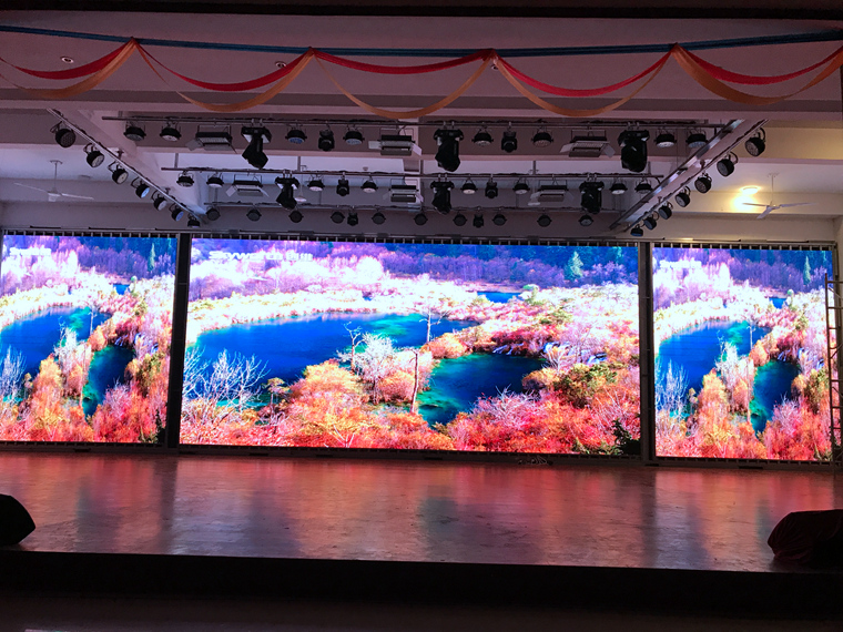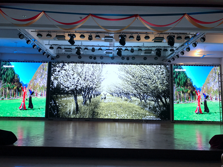 福建省泉州晉江市東石鎮郭岑小學(xué),戶(hù)內P4顯示屏,總點(diǎn)1600*768,一張發(fā)送卡,26張接收卡,單張接收卡最大帶載128*384。