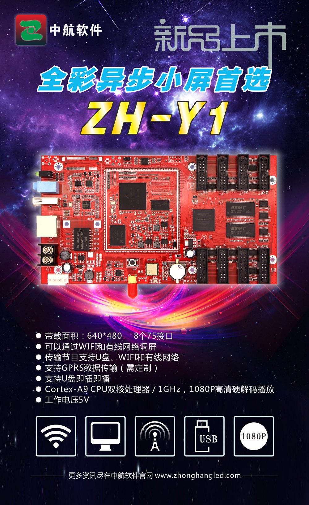 全彩異步小屏首選ZH-Y1,給您最優(yōu)的解決方案!1080P高清解碼播放,小屏也可以呈現豐富多彩的視覺(jué)盛宴。