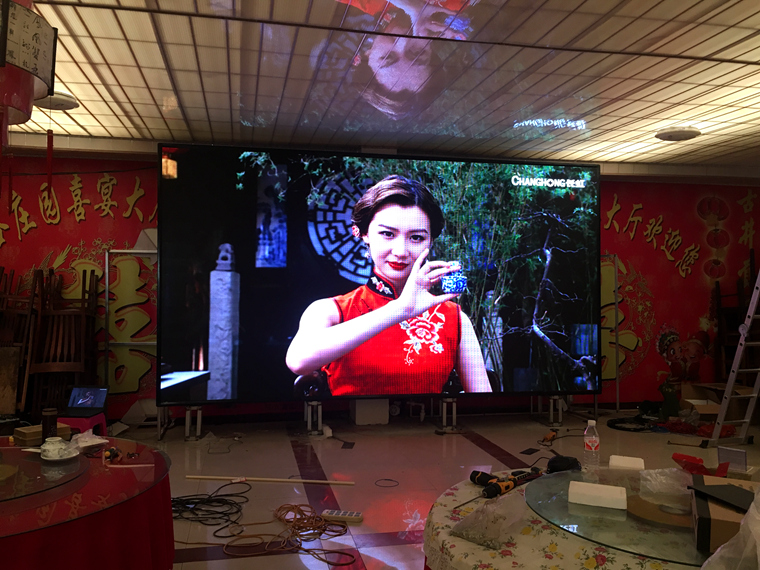 山東省齊河縣豐谷莊園喜宴大廳,室內p5,總點(diǎn)數960×512,單卡帶載點(diǎn)數192×256,十張接收卡,一張發(fā)送卡完美帶載!