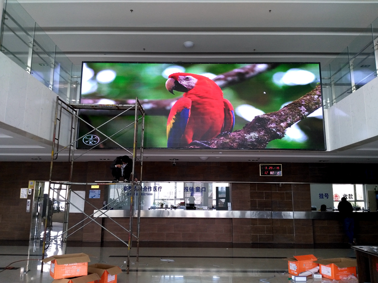 吉林省某縣醫院?jiǎn)挝?/span>,戶(hù)內P4 單卡帶載320*256(高*寬)時(shí)效果,一張發(fā)送卡14張接收卡完美帶載!